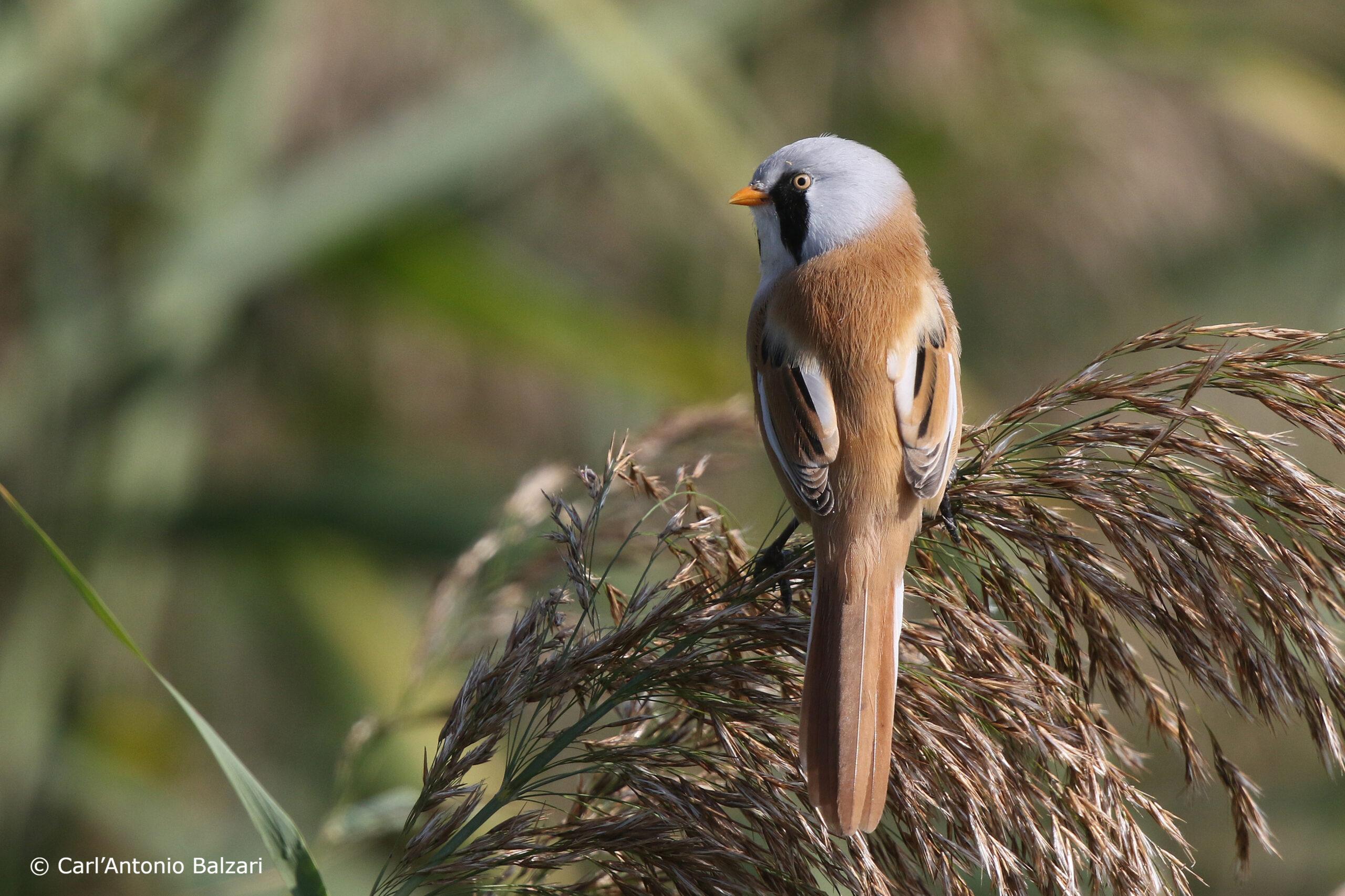 Die Bartmeise macht mit metallisch-nasalen Kontaktrufen aus dem dichten Schilf auf sich aufmerksam.