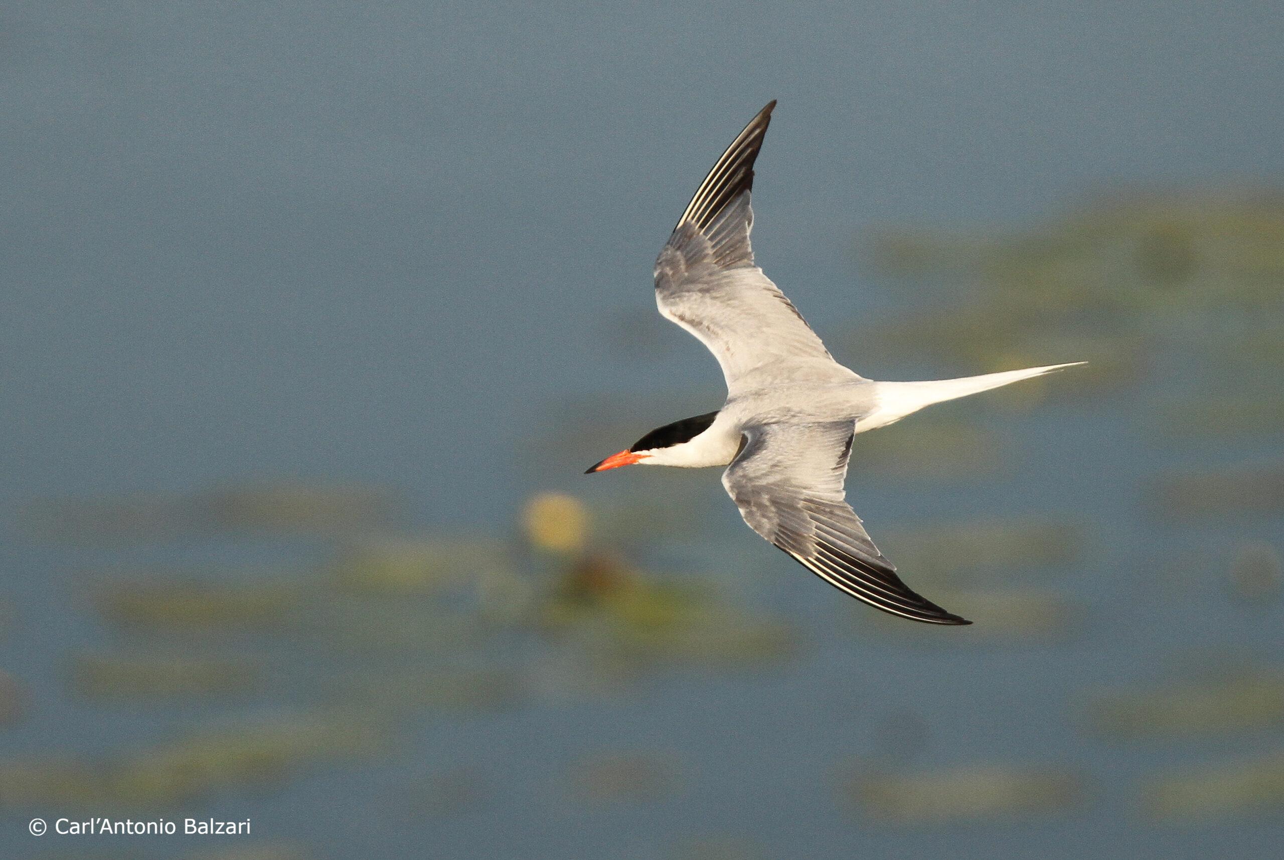 Flussseeschwalben und Lachmöwen brüten in gemischten Kolonien auf den künstlich errichteten Plattformen in der Lagune im Fanel.