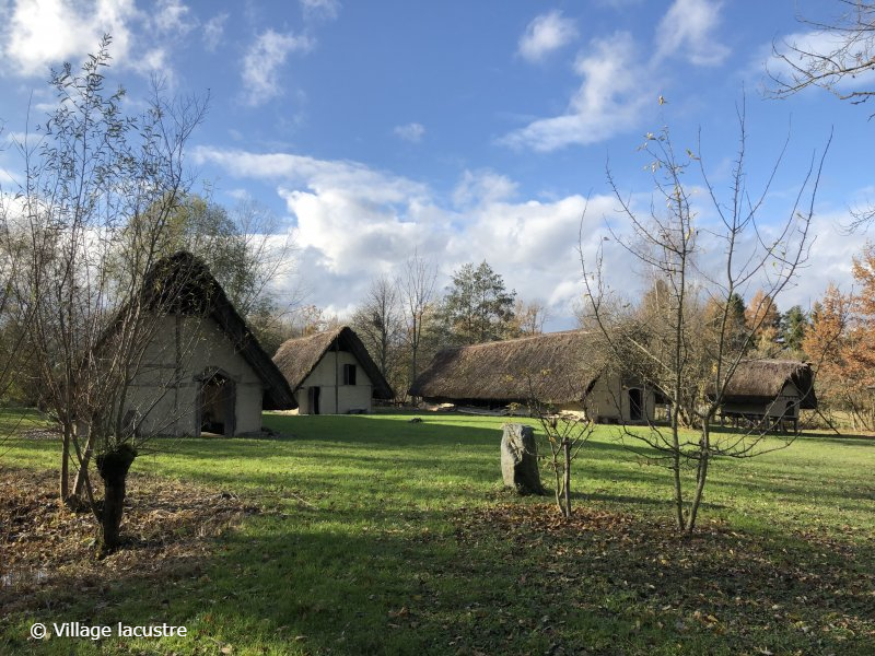 Das Pfahlbaudorf Gletterens stellt eine jungsteinzeitliche Siedlung dar und bietet verschiedene Workshops zu vorgeschichtlichen Handwerkstechniken an.