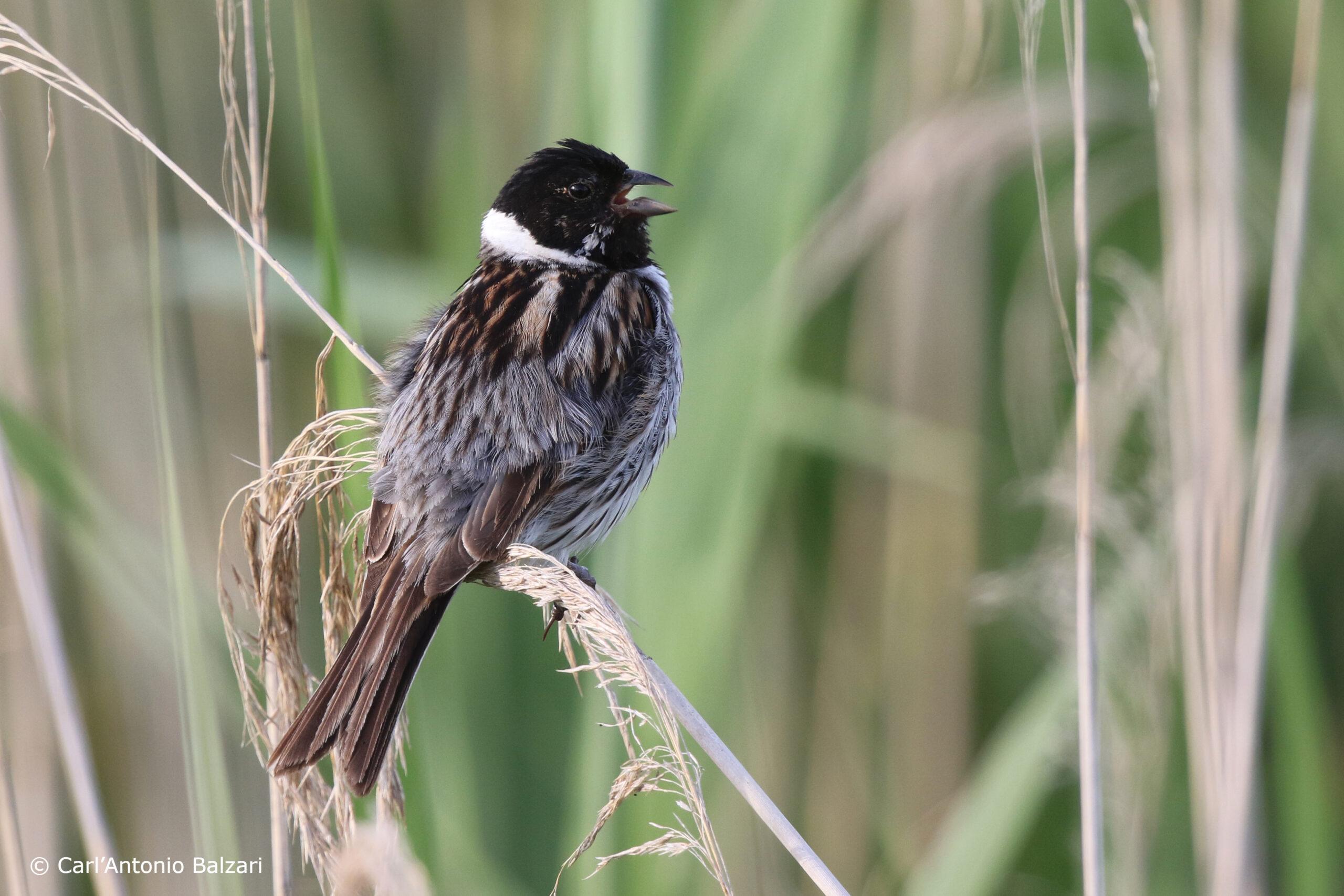 Die Rohrammer brütet gern in Seggenwiesen. Das Männchen singt oft auf hohen Schilfhalmen seinen einfachen Gesang.
