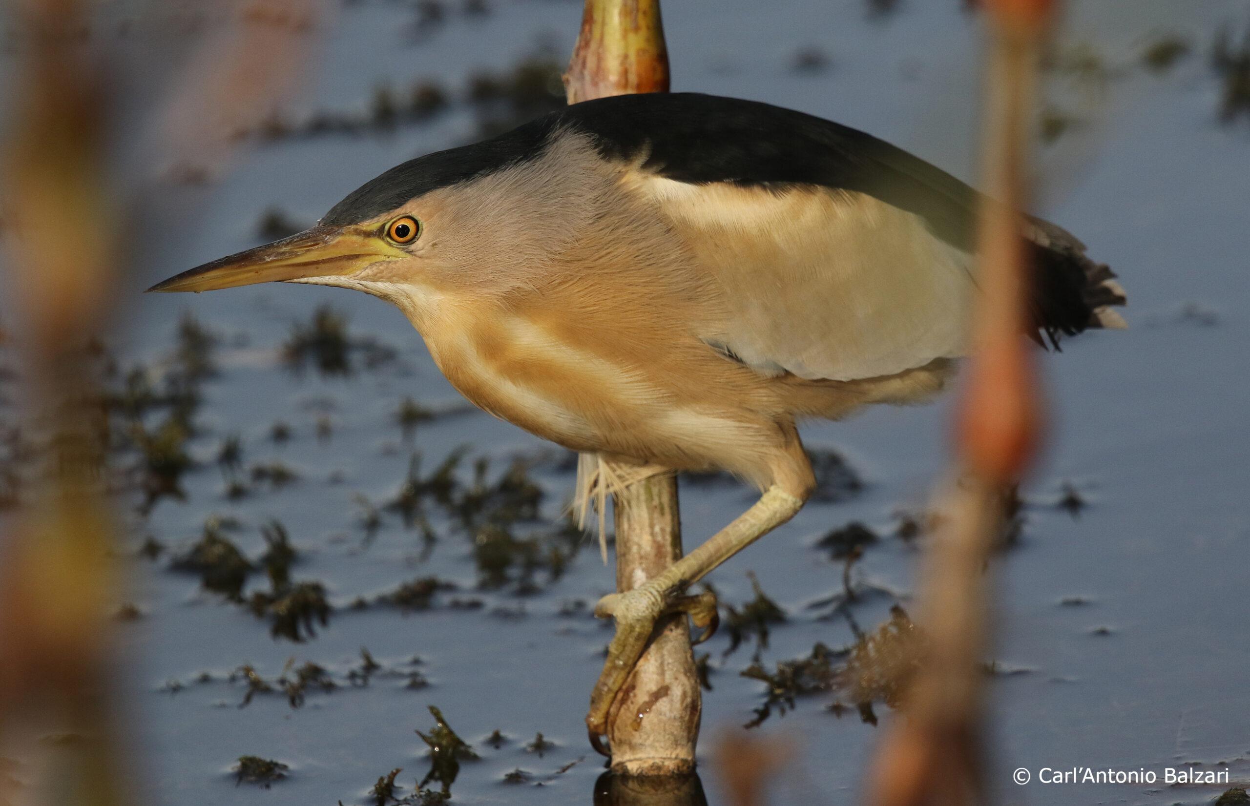Die Zwergdommel ist die kleinste Reiherart. Sie bewegt sich akrobatisch auf Schilfhalmen.